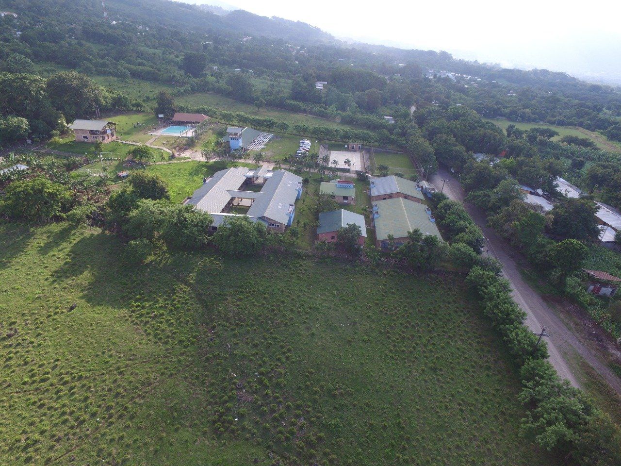 The project is located in San Francisco de Yojoa, a rural community up in the mountains with a population of approximately 22,000. The property is just over 4 acres and it consists of 7 individual buildings, which accommodate, the cafeteria, water purification plant, study and computer building, administration, dormitories with laundry and tutors/supervisors rooms, a medical building with a library and infirmary, a building with an auto mechanic workshop and a welding workshop and a guest/visitors house. There is also an area where donations of clothes are stored by size so they can be dispensed when needed, and a storage for hardware and machinery to use for the maintenance of the facility. There is a large food garden that supplies the kitchen and next to it is a chicken coops and livestock shelter. There are two courts for soccer and other sports.